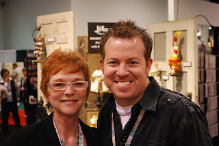 We had a great time tonight at the show event - the Craft Carnival. It focused on charitable organizations in the craft industry, so we got to make cards for Operation Write Home. Fawn even sewed a pillow case for ConKerr Cancer. We ate, we had charicatures drawn, palms read, dishes spun, feathers balanced, and we danced. Yes, it was an interesting night.